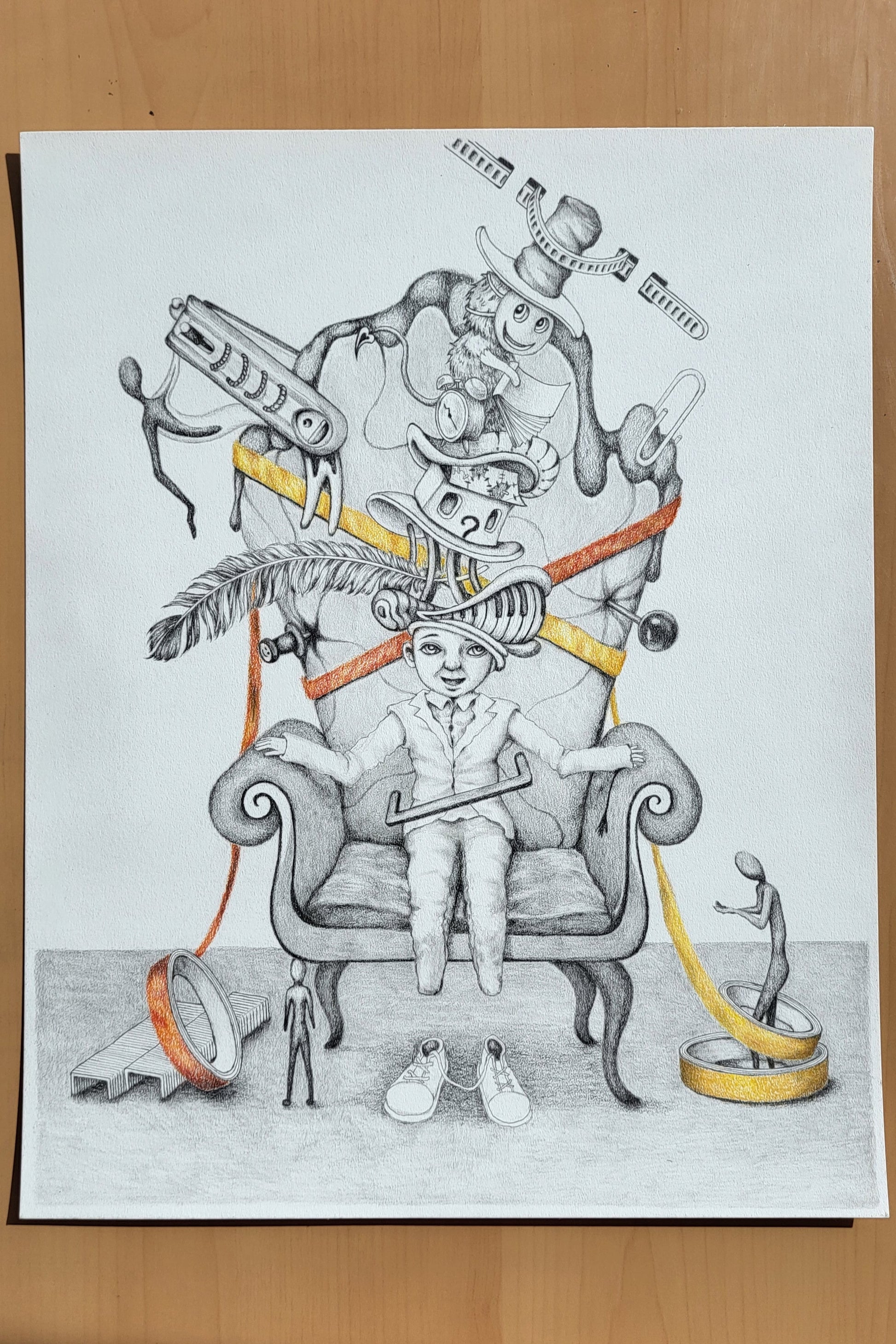 Inspiration - "We played house, except this time the game never ends. Hat after hat, chasing after having it all, until we found ourselves stuck, the child inside us fading as we forgot the goal was to play."